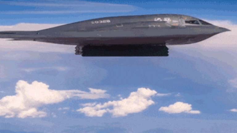 ▲美軍B-2隱身轟炸機(jī)試投GBU-57“巨型鉆地彈”(MOP)并命中目標(biāo)動(dòng)態(tài)圖。